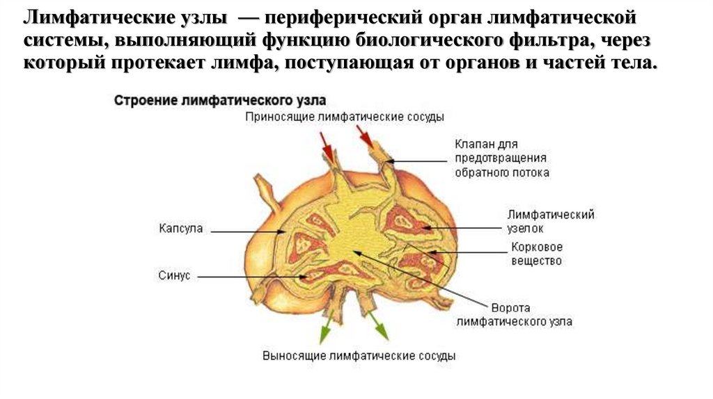 Лимфатические узлы — периферический орган лимфатическойсистемы, выполняющий функцию биологического фильтра, через