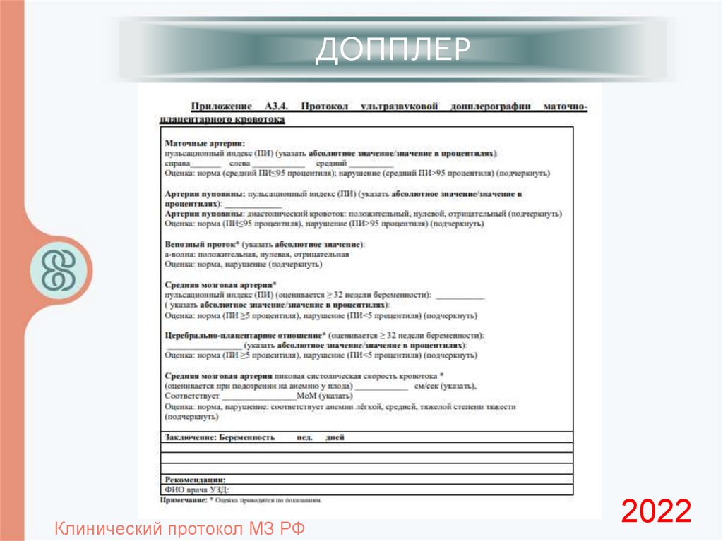 (вес плода, ОЖ, Допплер)
