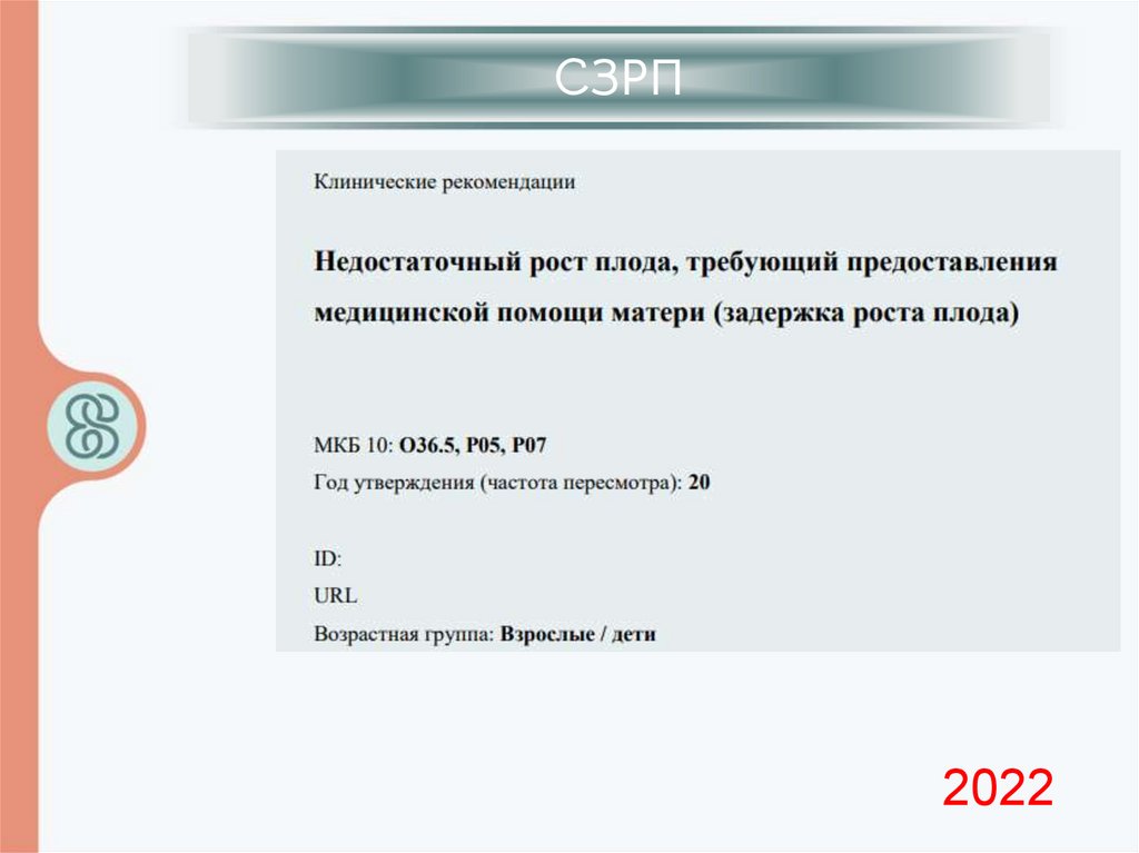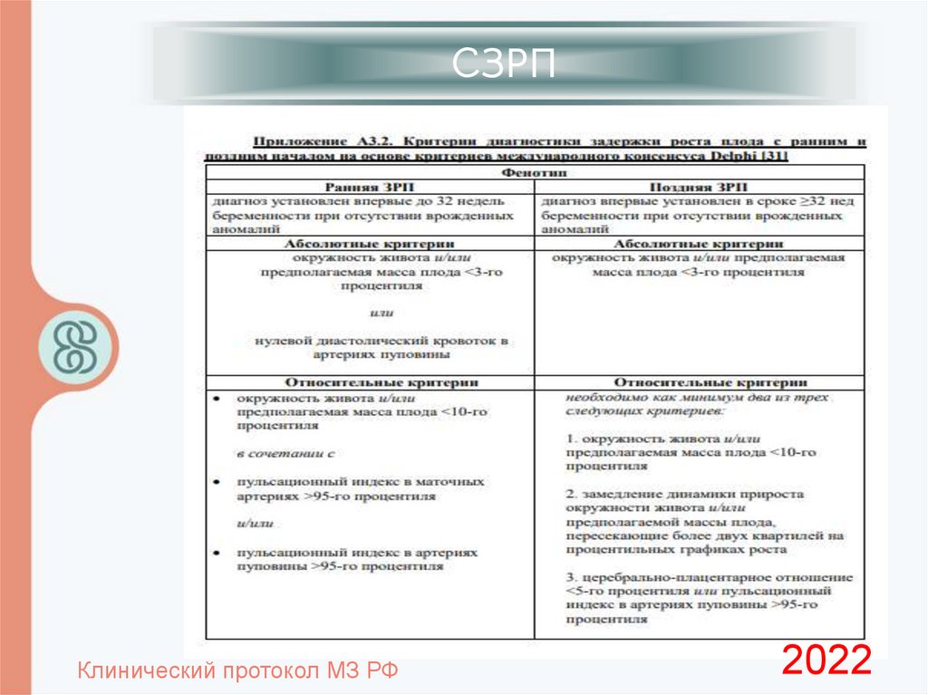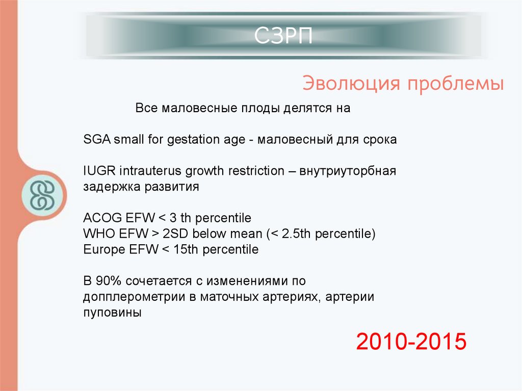 СЗРПЗадержка роста плода (ЗРП) – термин, характеризующий