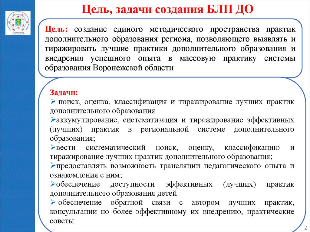 Проект создания банка лучших практик дополнительного образования Воронежской области