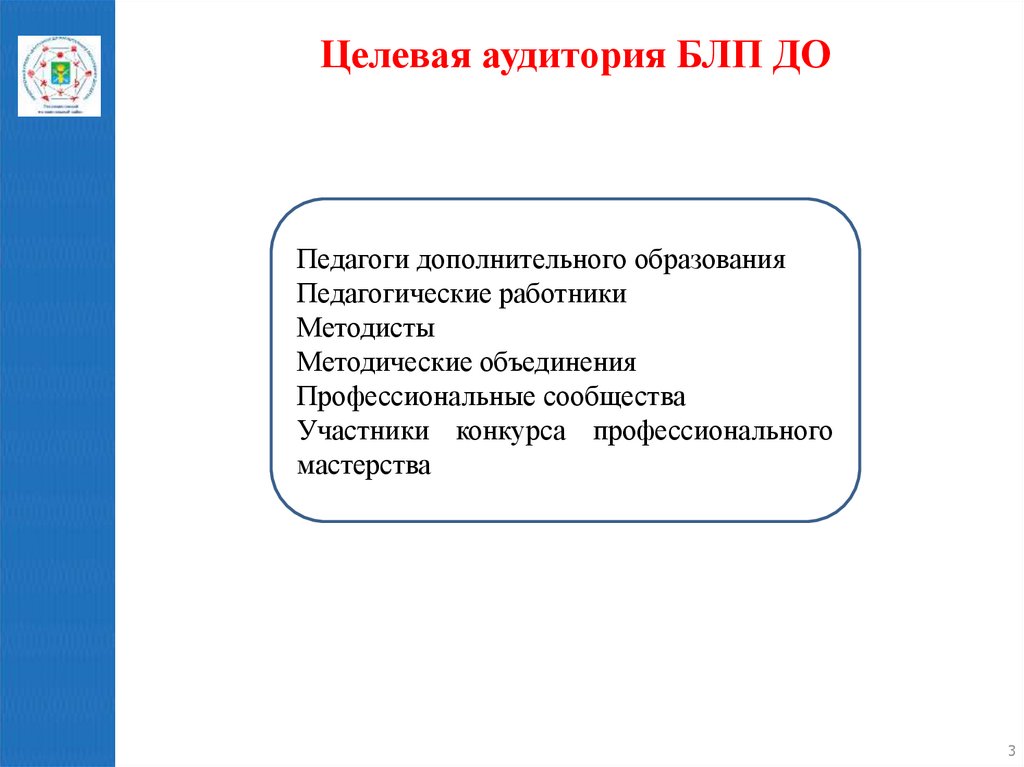 Целевая аудитория БЛП ДОПедагоги дополнительного образования