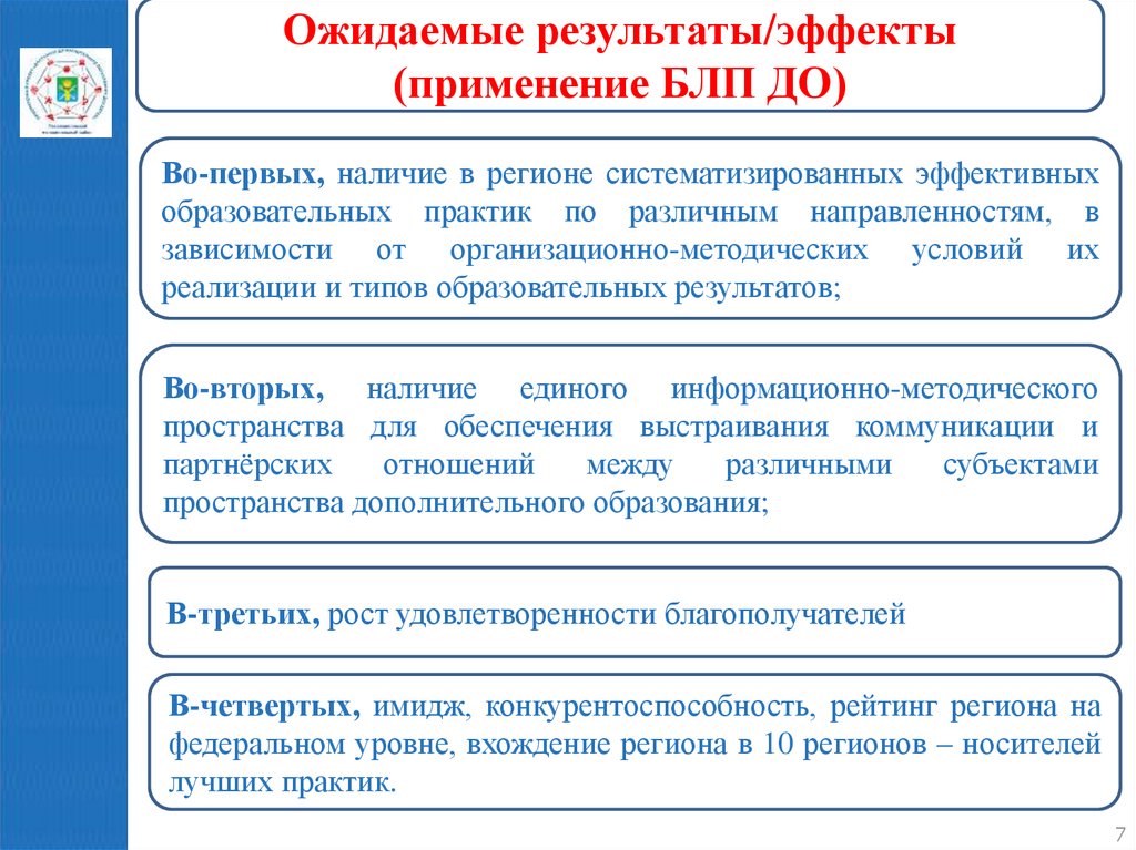 Ожидаемые результаты/эффекты(применение БЛП ДО)