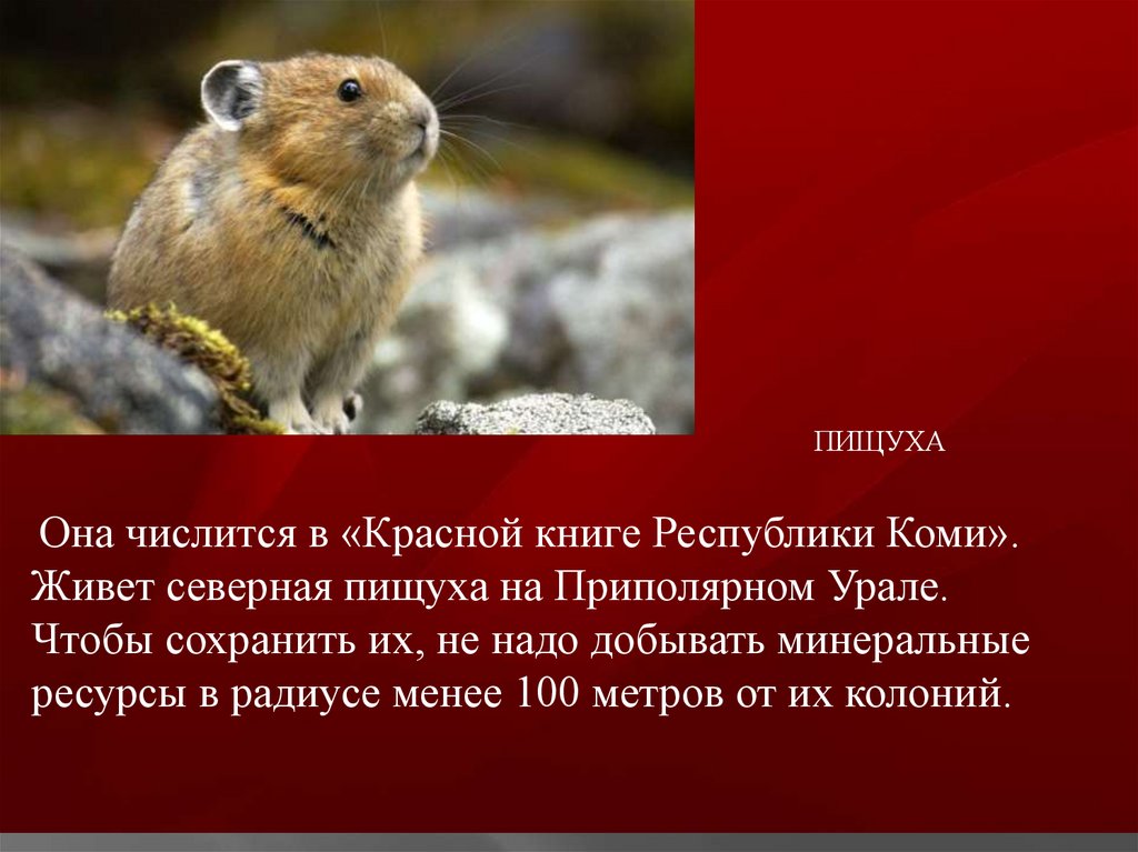 ПИЩУХАОна числится в «Красной книге Республики Коми».