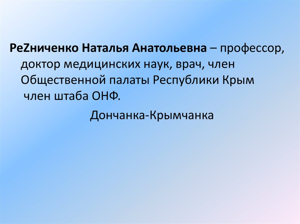 РеZниченко Наталья Анатольевна – профессор,доктор медицинских наук, врач, член