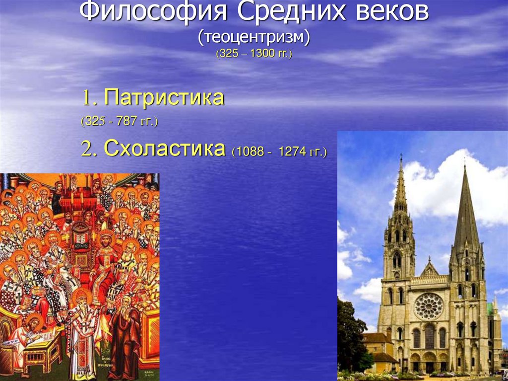 1. Философия Средних веков (теоцентризм) (325 – 1300 гг.)
