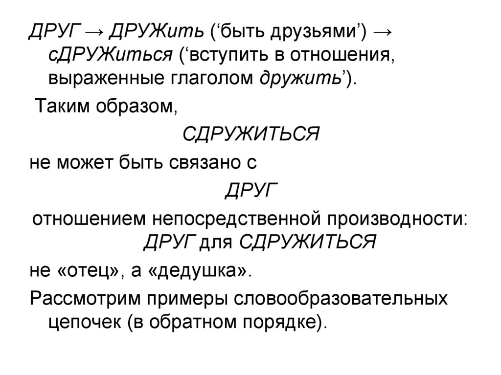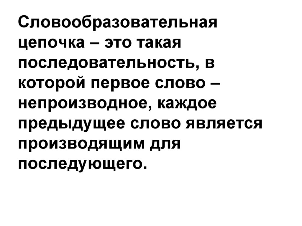 СЛОВООБРАЗОВАТЕЛЬНАЯ ЦЕПОЧКАВнутри словообразовательного гнезда