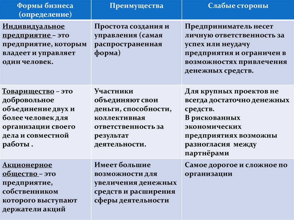 Формы бизнеса(определение)