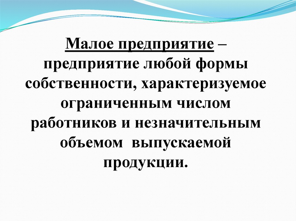 Малое предприятие –предприятие любой формы