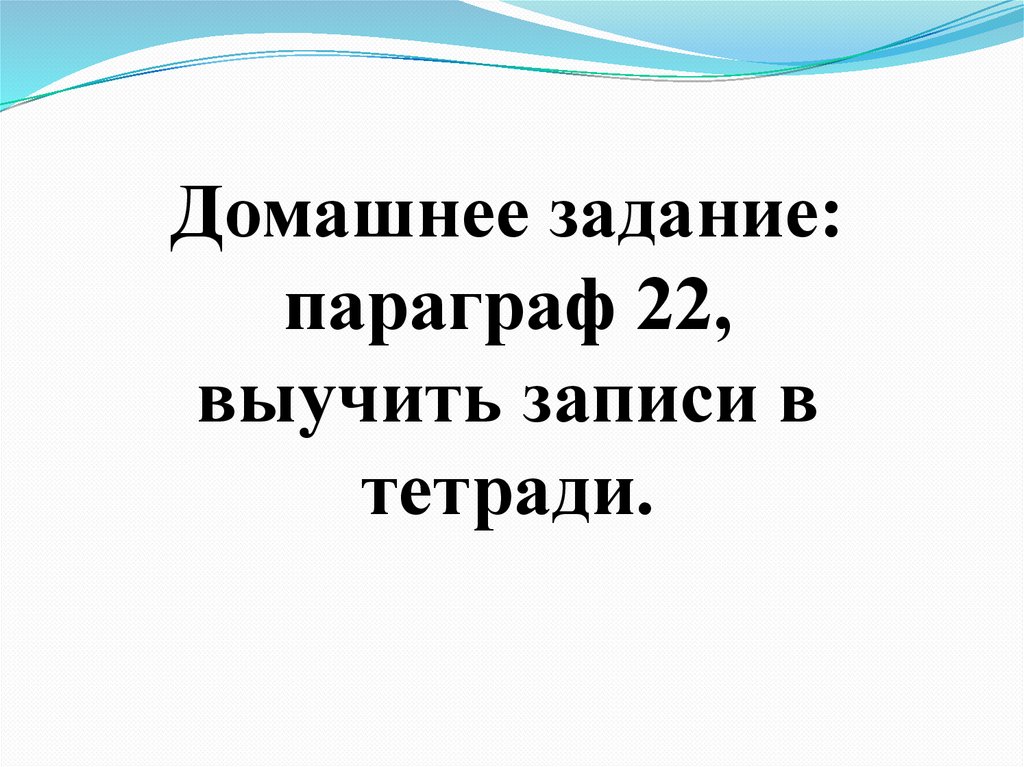 Домашнее задание:параграф 22,