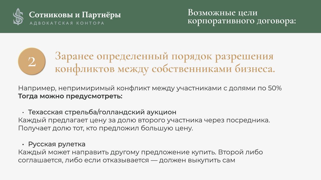 (в т.ч. бизнеса) по заранее определенным условиям.
