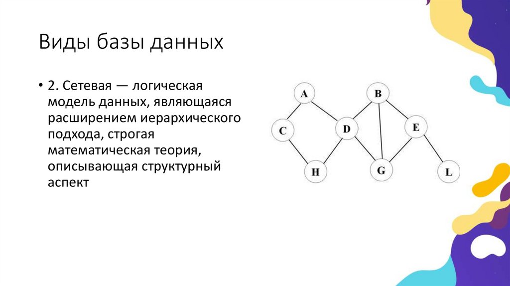 Виды базы данных• 2. Сетевая — логическая