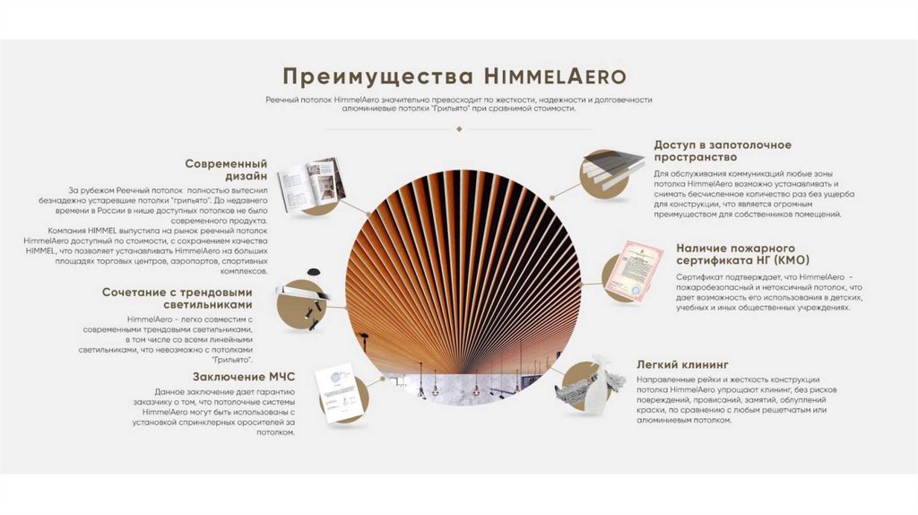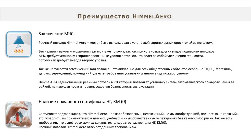 При этом Himmel Aero имеет класс горючести НГ КМ(0), может быть использован с установкой спринклерных оросителей