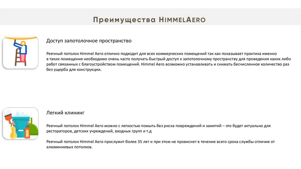 Доступ запотолочное пространствоРеечный потолок Himmel Aero отлично подходит для всех коммерческих помещений так как показывает практика именно