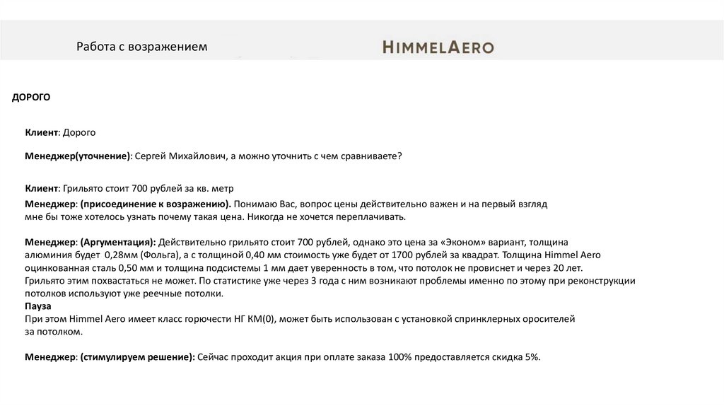 Менеджер: (присоединение к возражению). Понимаю Вас, вопрос цены действительно важен и на первый взгляд