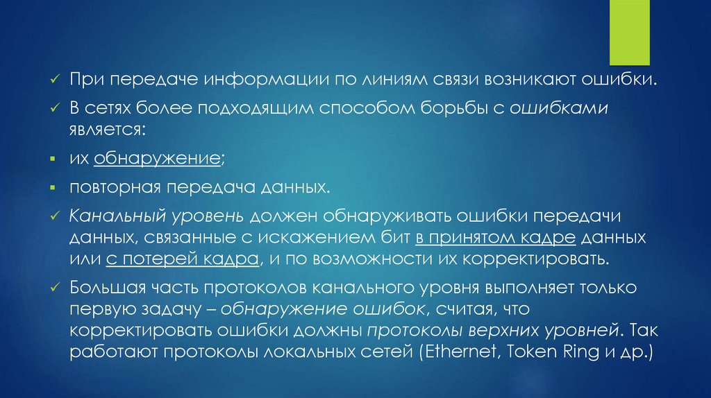 Канальный уровень должен обнаруживать ошибки передачи