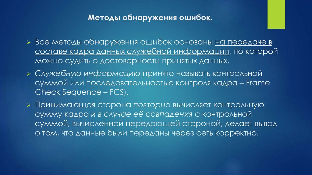 Методы обнаружения ошибок.Все методы обнаружения ошибок основаны на передаче в