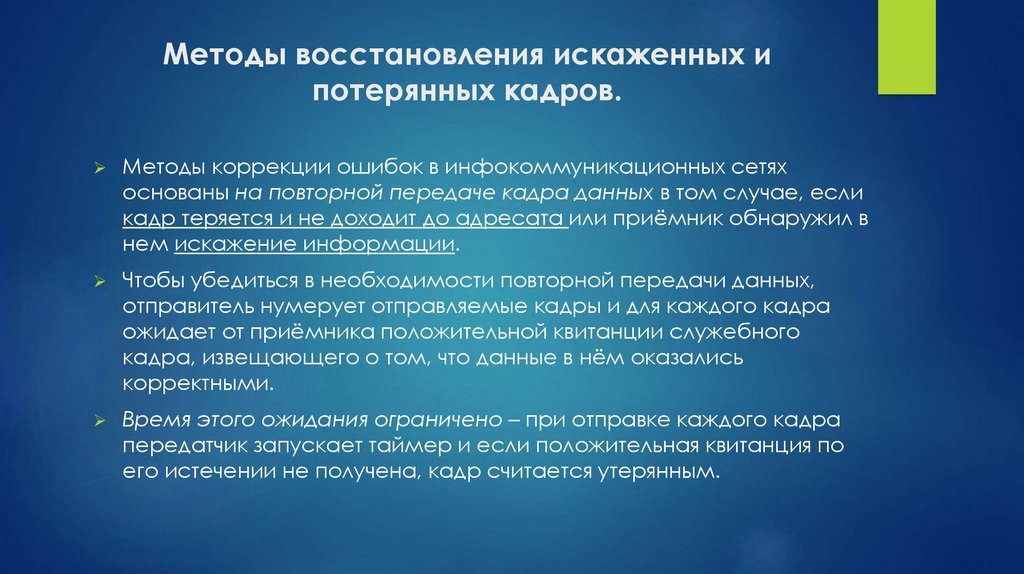 основаны на повторной передаче кадра данных в том случае, если