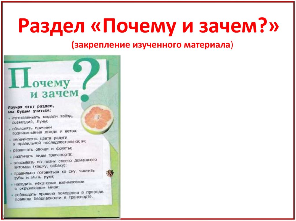 Раздел «Почему и зачем?» (закрепление изученного материала)