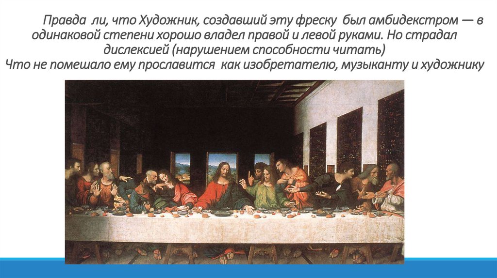 Правда ли, что Художник, создавший эту фреску был амбидекстром — водинаковой степени хорошо владел правой и левой руками. Но страдал
