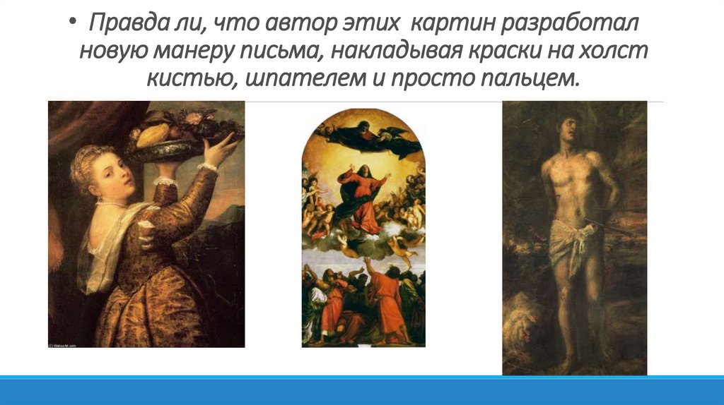 • Правда ли, что автор этих картин разработалновую манеру письма, накладывая краски на холст