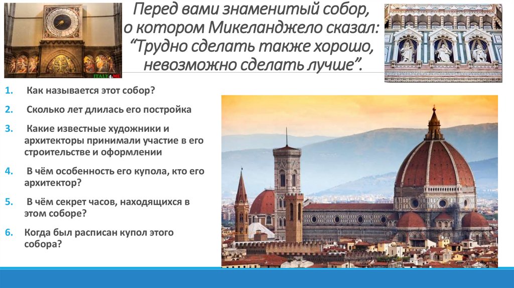 Перед вами знаменитый собор,о котором Микеланджело сказал:
