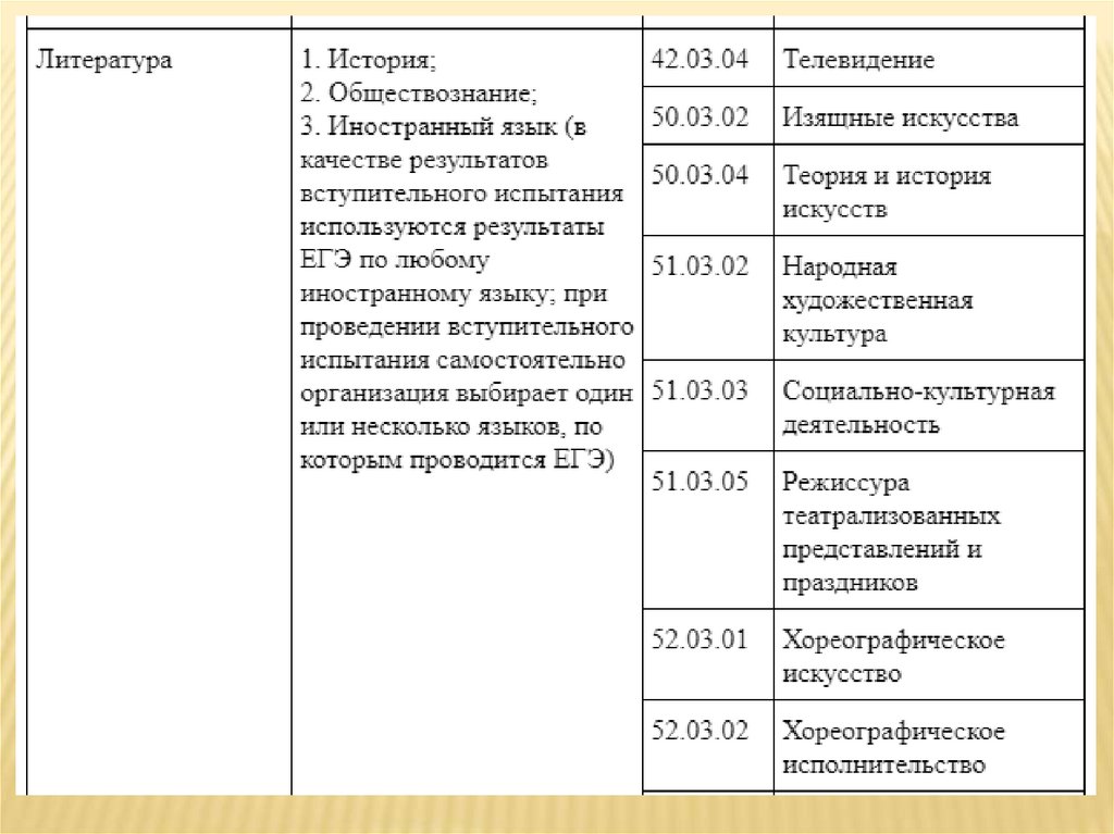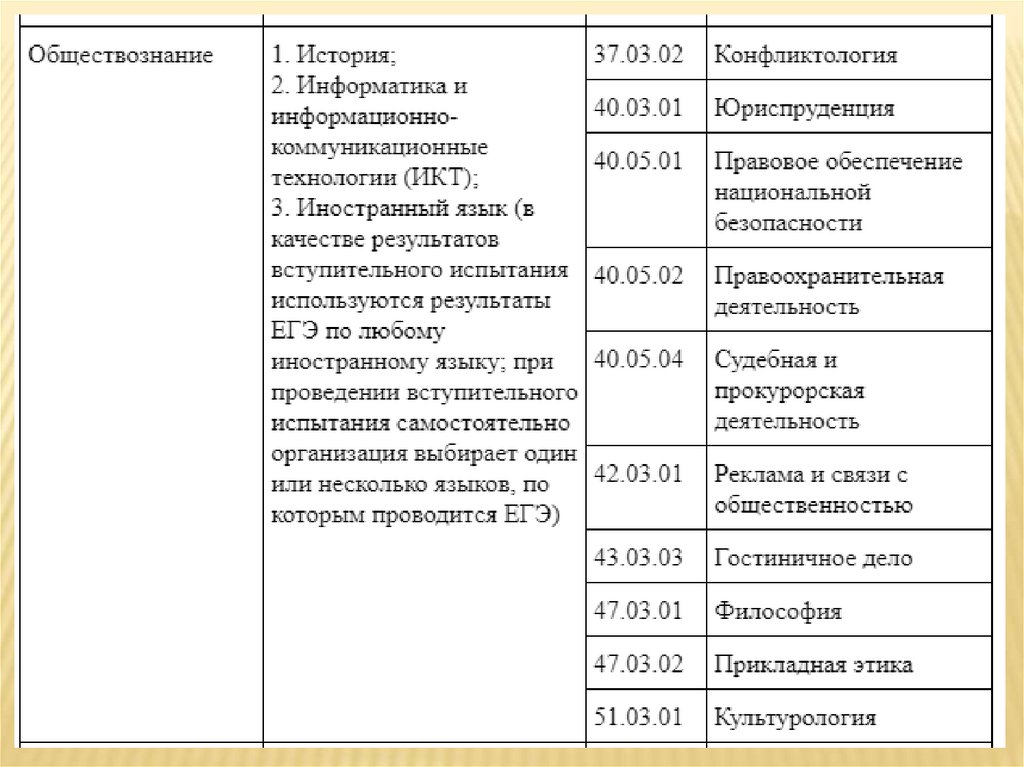ВЫСШЕЕ ОБРАЗОВАНИЕПЕРЕЧЕНЬ