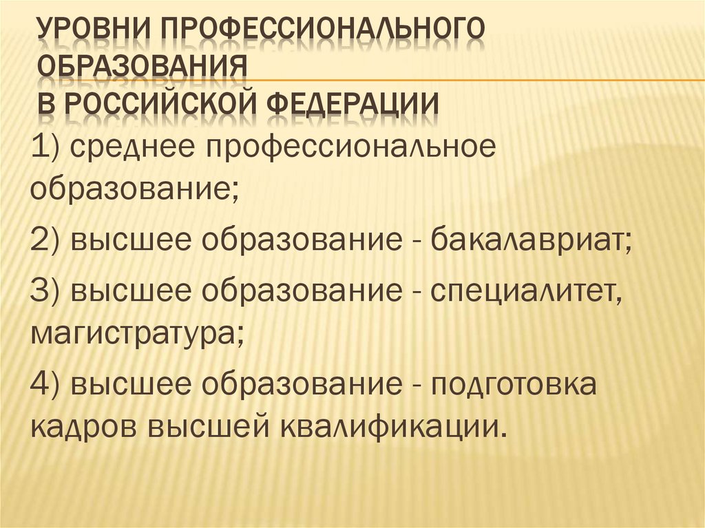 УРОВНИ ПРОФЕССИОНАЛЬНОГООБРАЗОВАНИЯ