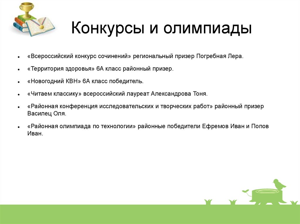 Конкурсы и олимпиады«Всероссийский конкурс сочинений» региональный призер Погребная Лера.