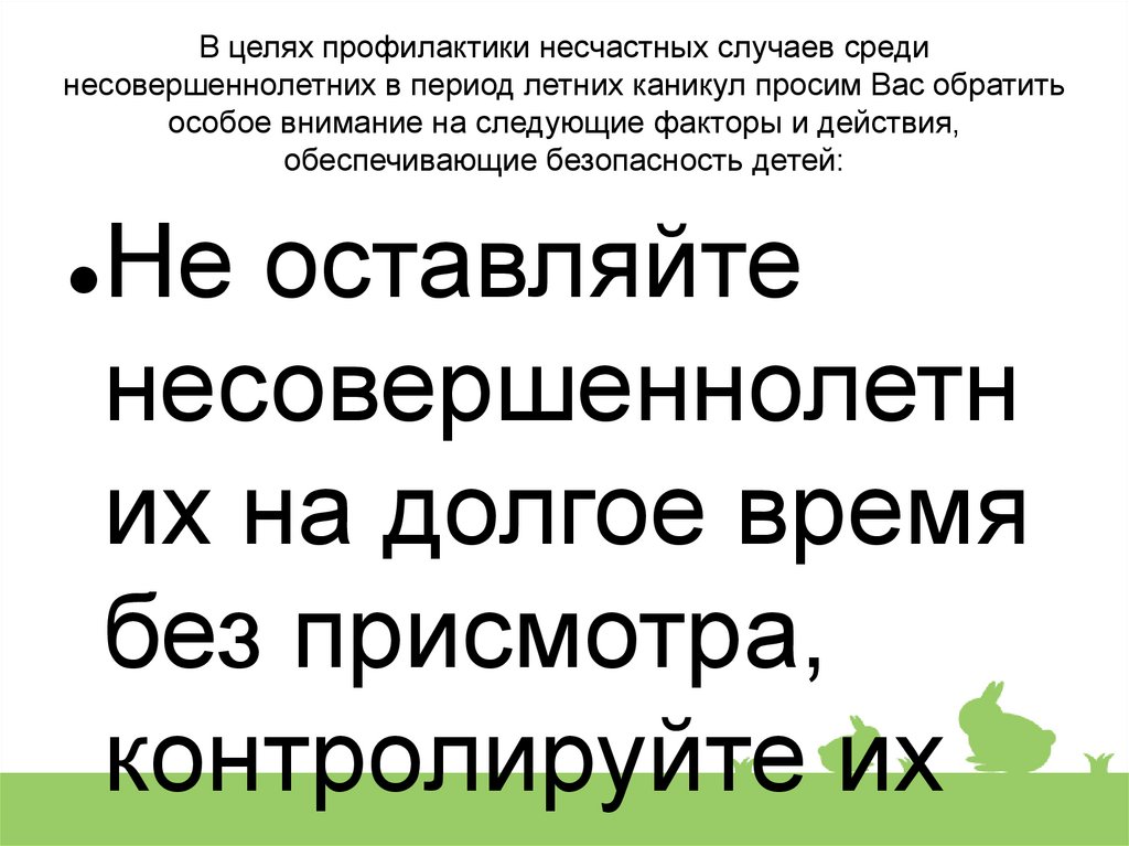 В целях профилактики несчастных случаев срединесовершеннолетних в период летних каникул просим Вас обратить