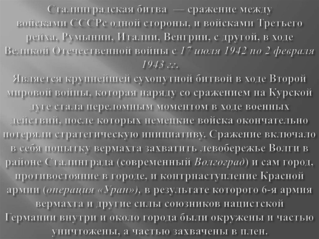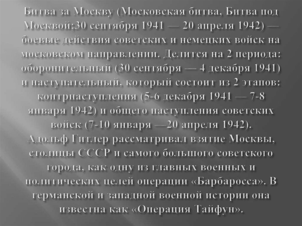 Памятные даты ВОВ. Декабрь 1941-1945