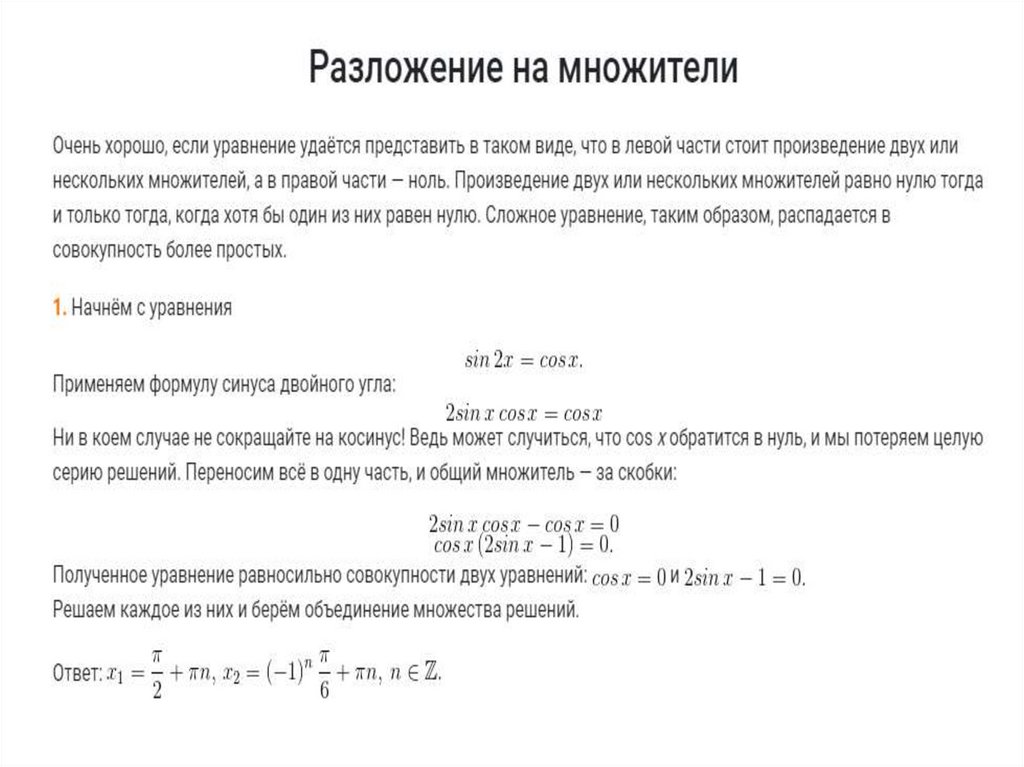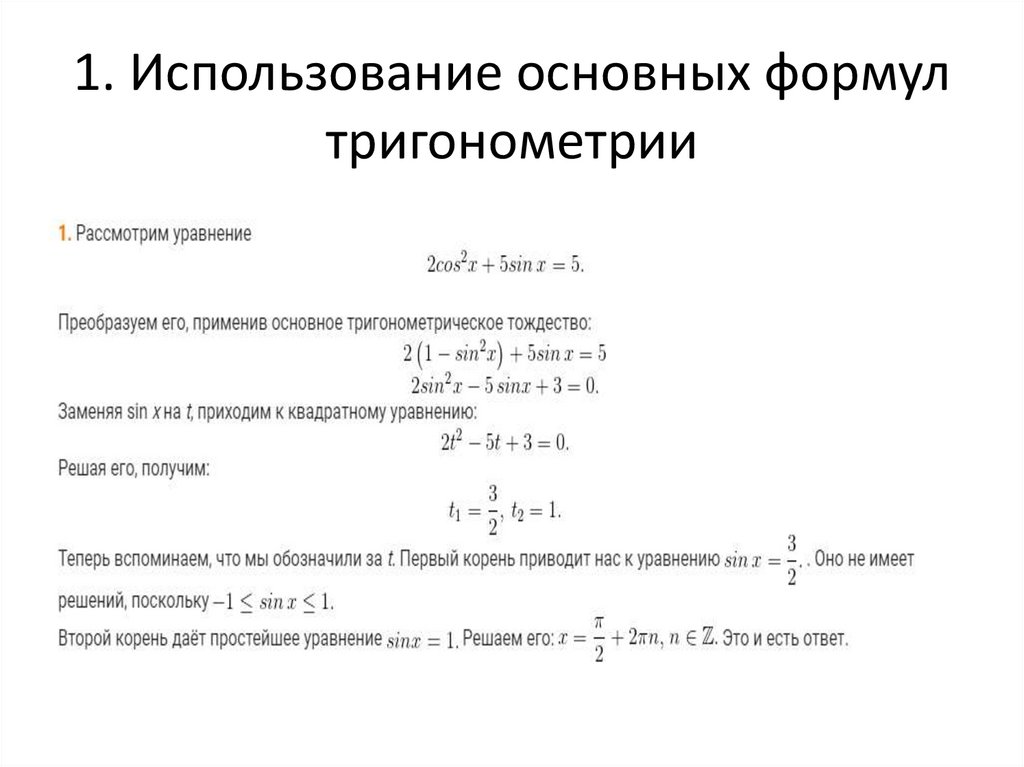 Тригонометрические уравнения. Методы решения тригонометрических уравнений