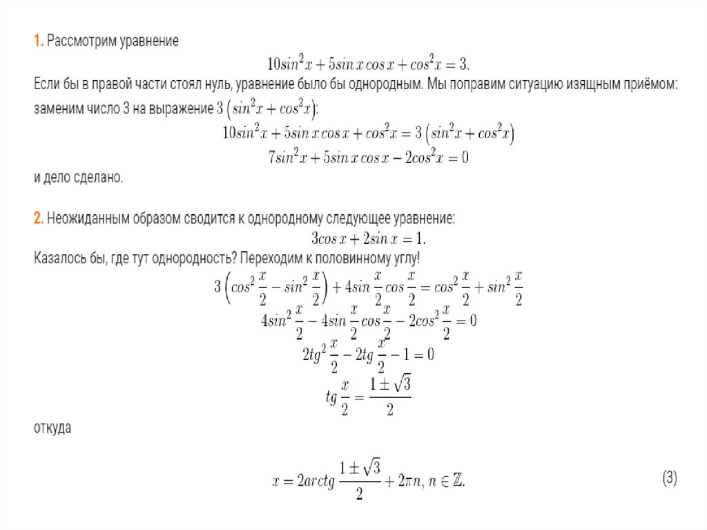 Тригонометрические уравнения. Однородные тригонометрические уравнения