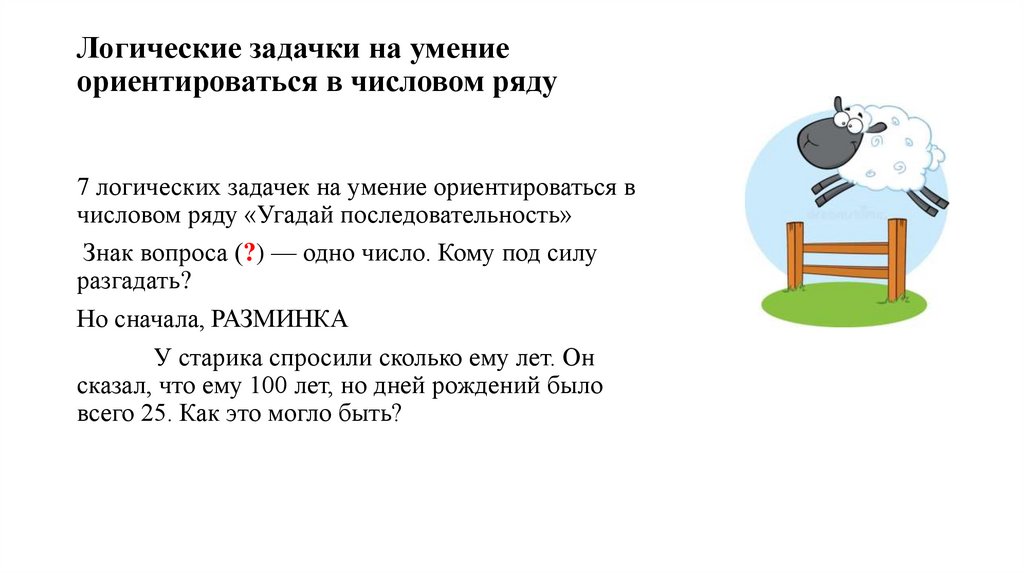Логические задачки на умение ориентироваться в числовом ряду