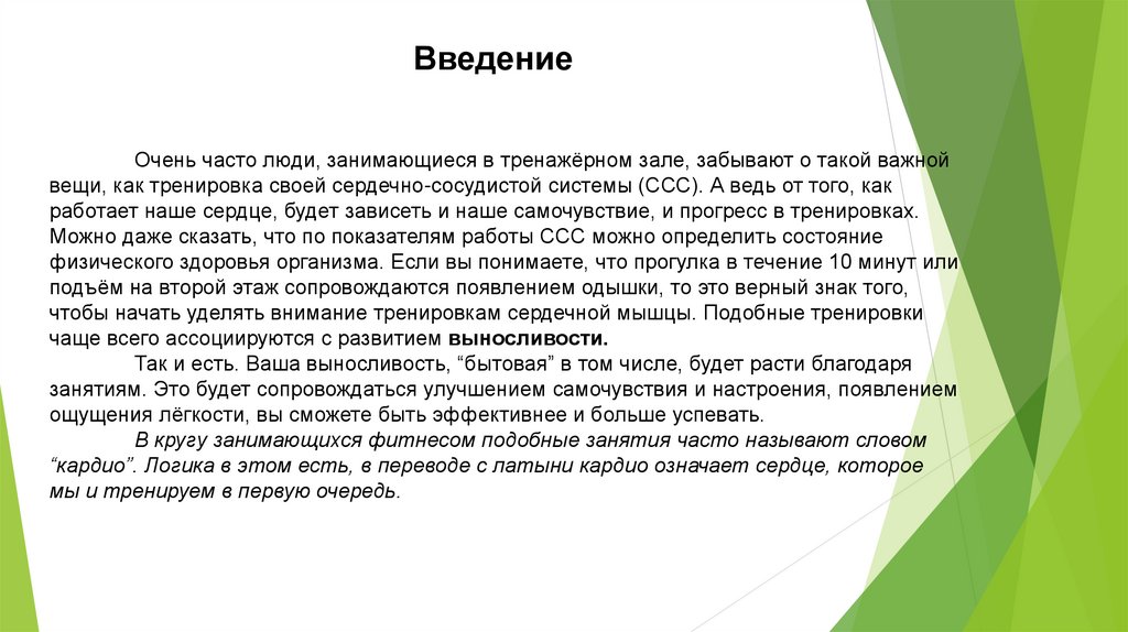 вещи, как тренировка своей сердечно-сосудистой системы (ССС). А ведь от того, как