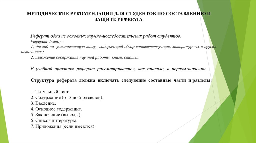 МЕТОДИЧЕСКИЕ РЕКОМЕНДАЦИИ ДЛЯ СТУДЕНТОВ ПО СОСТАВЛЕНИЮ ИЗАЩИТЕ РЕФЕРАТА