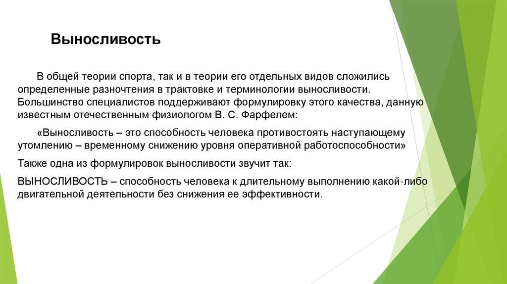 ВыносливостьВ общей теории спорта, так и в теории его отдельных видов сложились
