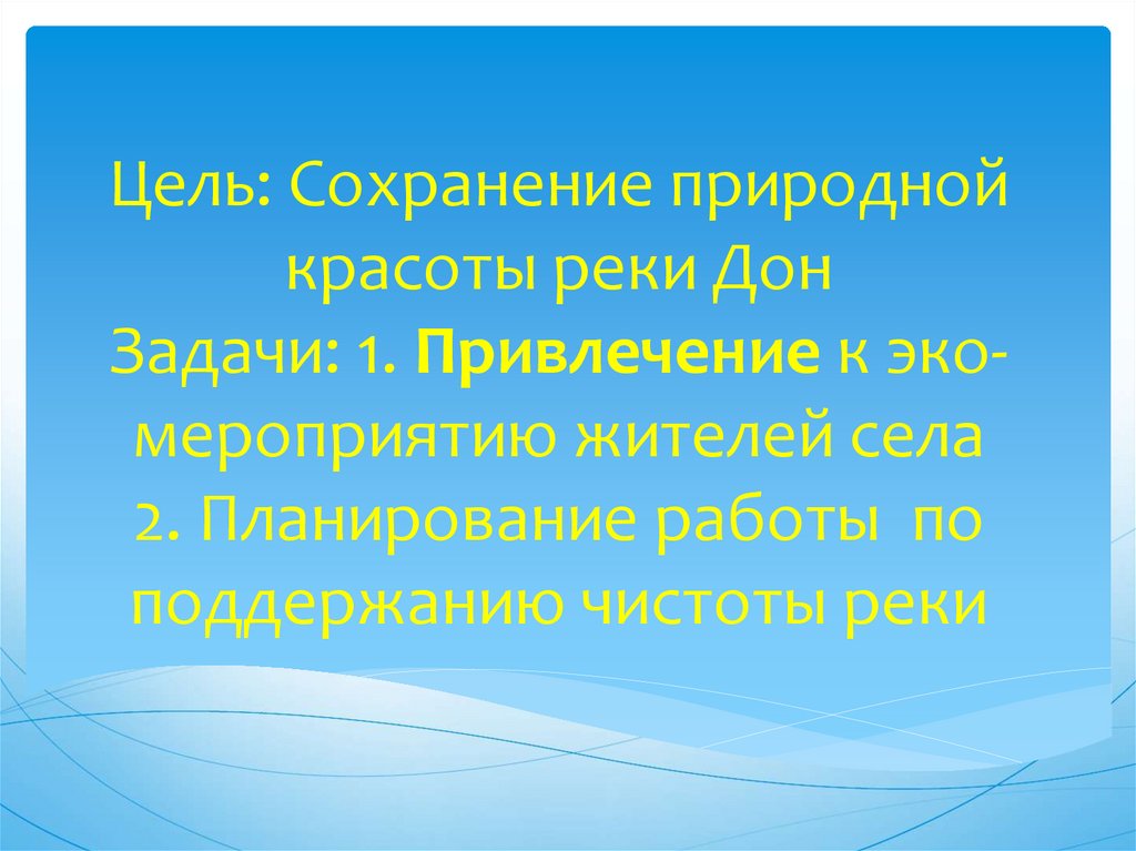 Задачи: 1. Привлечение к экомероприятию жителей села