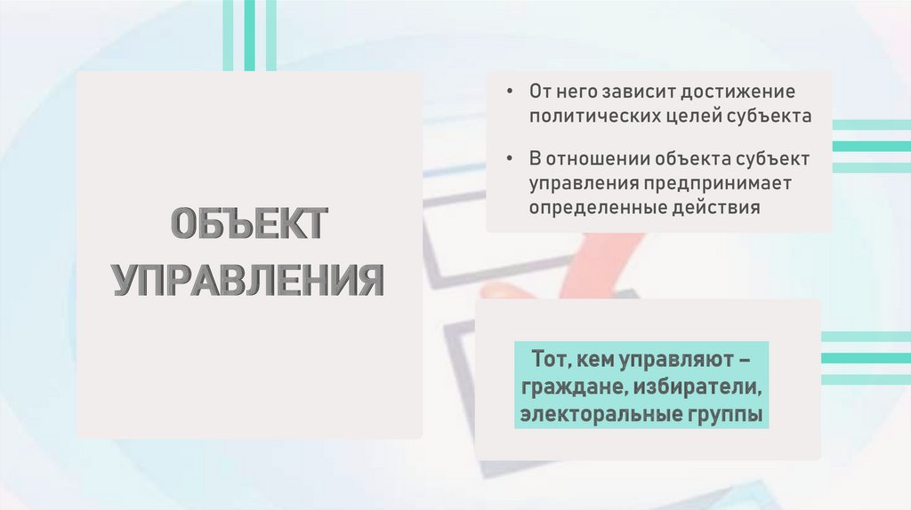 ОБЪЕКТ УПРАВЛЕНИЯ ВПОЛИТИЧЕСКОЙ КАМПАНИИ