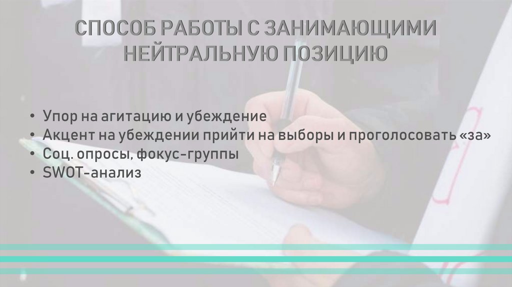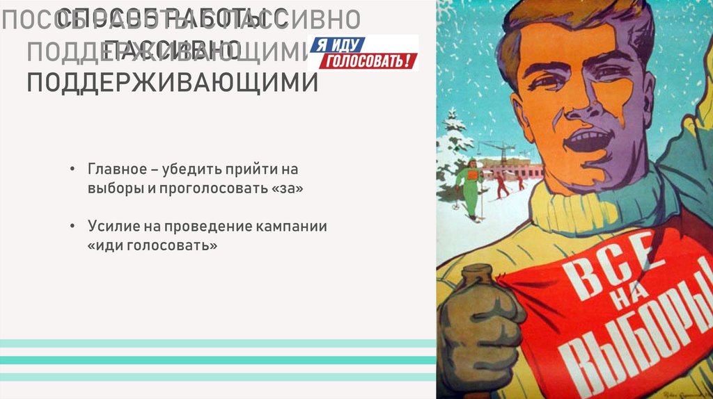 Акцент на убеждении прийти на выборы и проголосовать «за»
