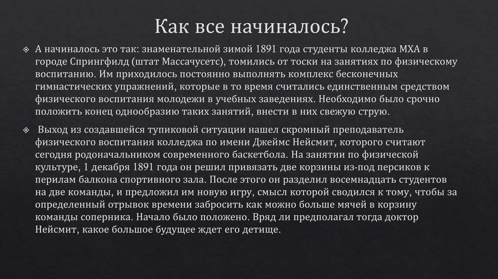 Баскетбол. Этапы развития баскетбола