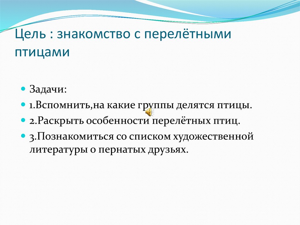 Цель : знакомство с перелётнымиптицами