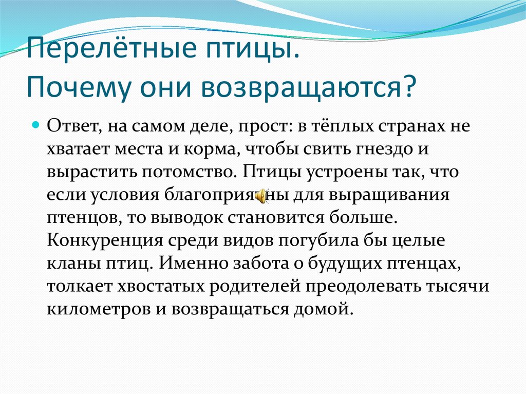 Перелётные птицы.Почему они возвращаются?