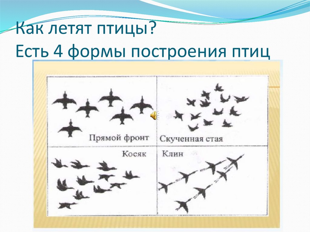 Как летят птицы?Есть 4 формы построения птиц