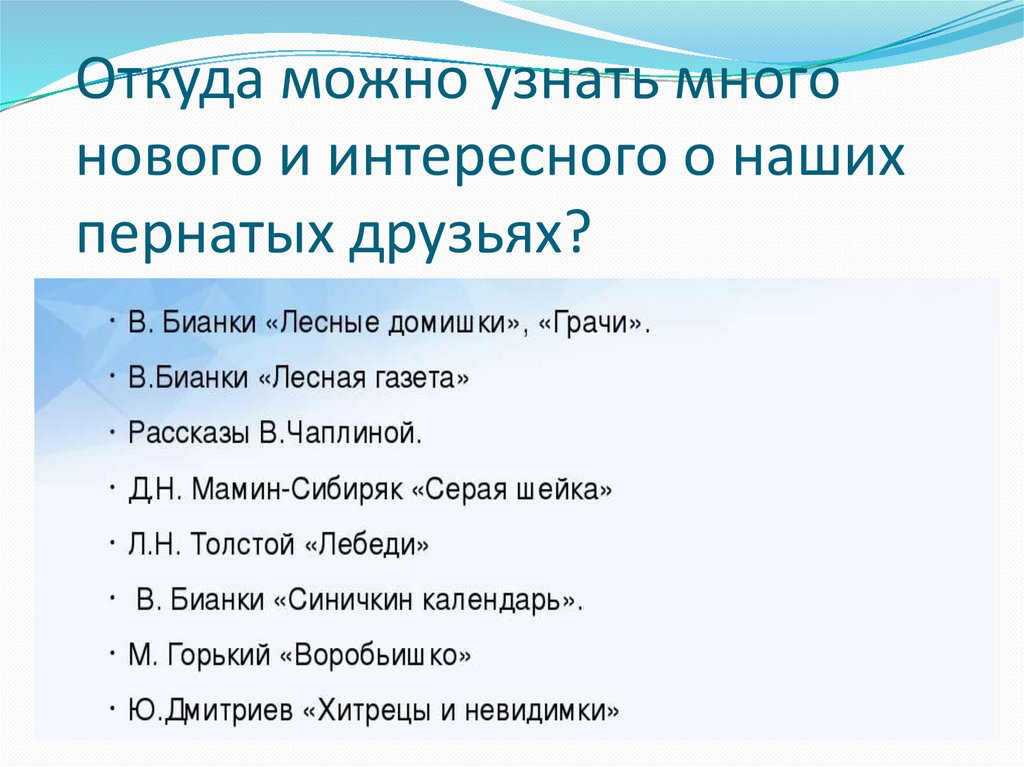 литературы о пернатых друзьях.