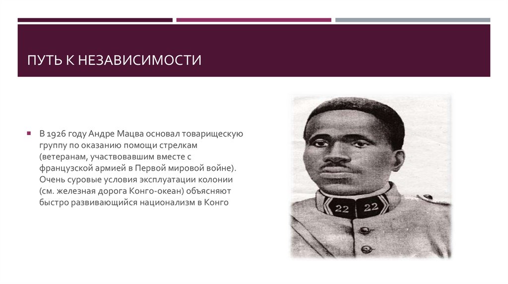 ПУТЬ К НЕЗАВИСИМОСТИВ 1926 году Андре Мацва основал товарищескую
