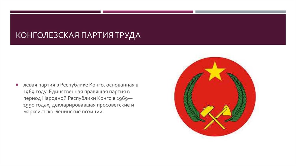 КОНГОЛЕЗСКАЯ ПАРТИЯ ТРУДАлевая партия в Республике Конго, основанная в
