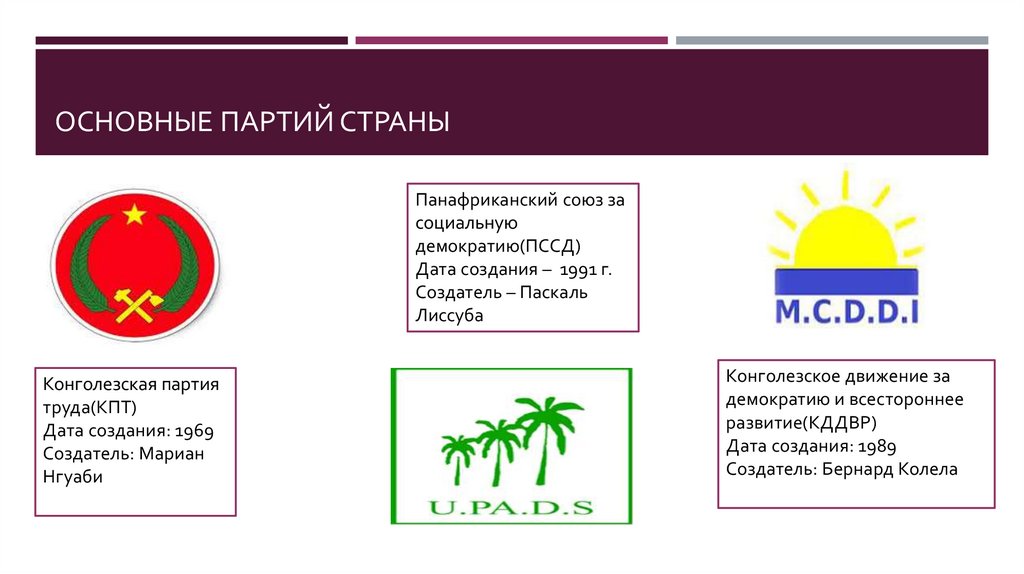 ОСНОВНЫЕ ПАРТИЙ СТРАНЫПанафриканский союз за