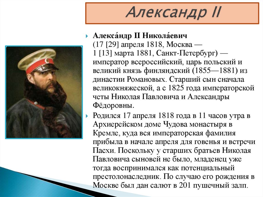 Алекса́ндр II Никола́евич(17 [29] апреля 1818, Москва —