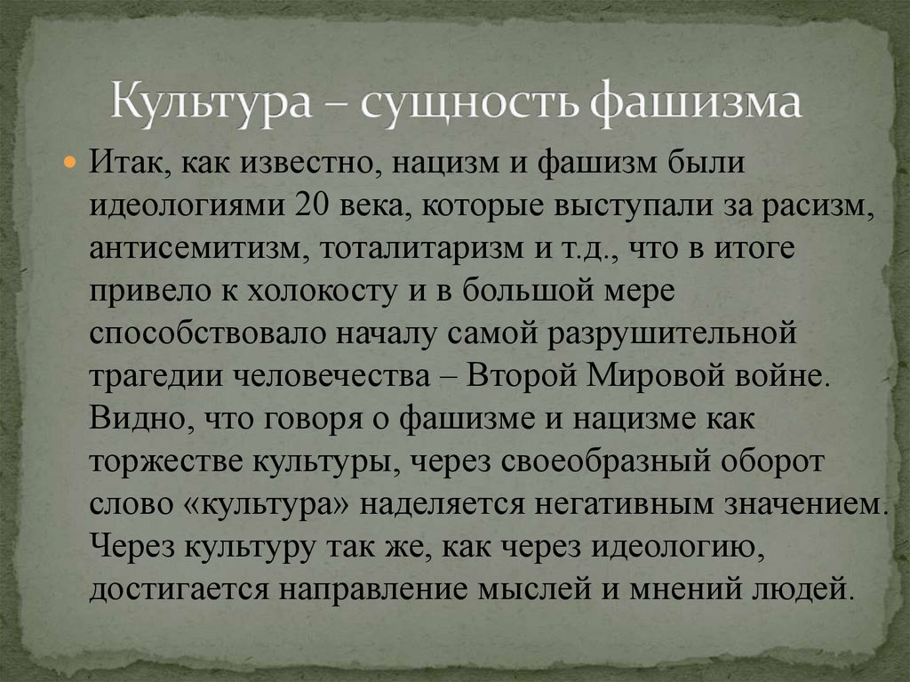 Итак, как известно, нацизм и фашизм былиидеологиями 20 века, которые выступали за расизм,