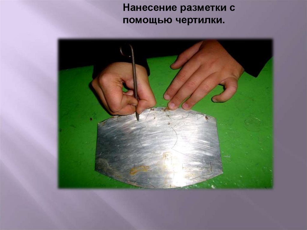 Нанесение разметки спомощью чертилки.